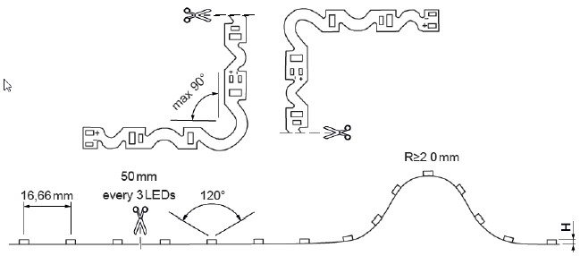 Seitlich formbares LED-Streifenmodul S-SHAPE, 12V dc, 9W/M, 4000K