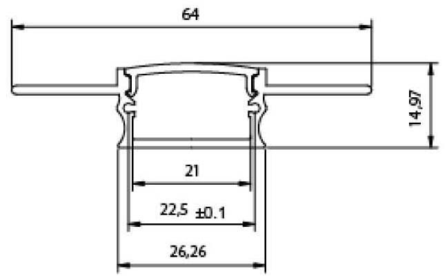 L x B x H = s. Auswahlefeld x 64 x 15mm, inkl. 2 Endstücke, Standard-Lieferlänge ab Werk 1, 2 oder 3m