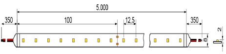 LED Streifen flexibel, CRI 90, 24V dc, 24W, mit SMD-2835-LED, 5000mm lang, rückseitig 3M-Klebeband, Aderenden verzinnt, 300mm Anschlussleitung