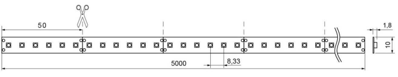 Flex-Leiterplatte, 24V DC, CRI typ. 85, SMD-Streifenmodul flexibel, 3M-Klebeband, 5000 x 10 mm, 600 SMD-LED, 24V DC, 144W, EE-Klasse A, EC: 1440KWh/1000h