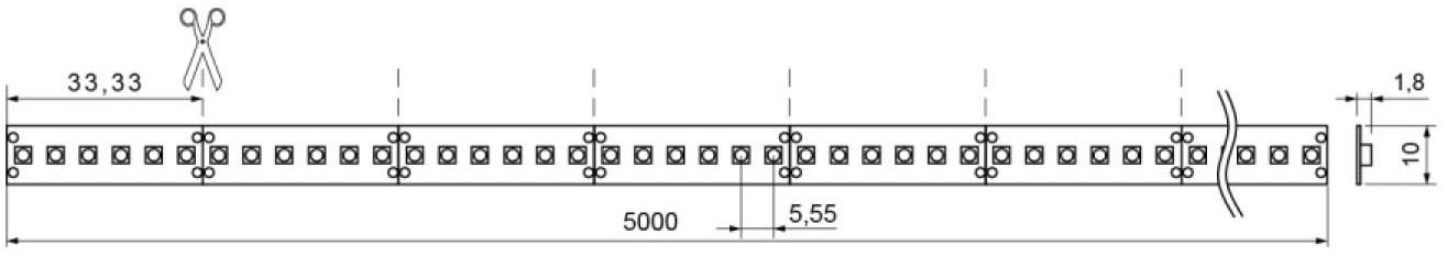 Flex-Leiterplatte, 24V DC, CRI typ. 85, 3M-Klebeband, 5000 x 10 mm, 900 SMD-LED, 24V DC, 216W, EE-Klasse A, EC: 2160KWh/1000h