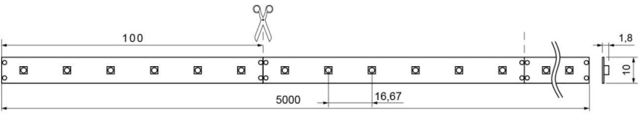 Flex-Leiterplatte, 24V DC, CRI typ. 85, SMD-Streifenmodul flexibel, 3M-Klebeband, 5000 x 10 mm, 300 SMD-LED, 24V DC, 72W, EE-Klasse A, EC: 720KWh/1000h