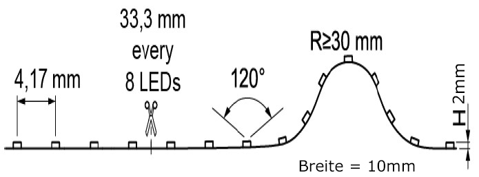 Teilbar je 8 LEDs = 33,33cm (LED-Abstand = 4,17mm)
