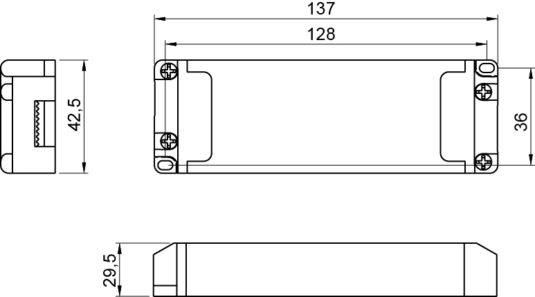 Abmessungen 137 x 42,5 x 29,5 mm