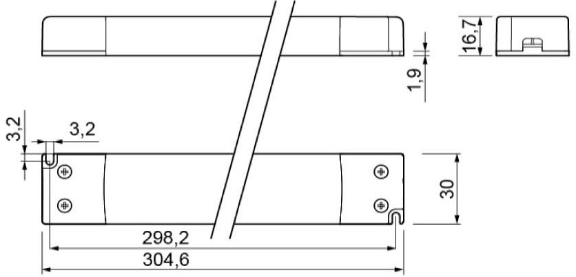 Primär 220-240V/50-60Hz, Schraubklemmen, L x B x H = 305 x 30 x 17mm
