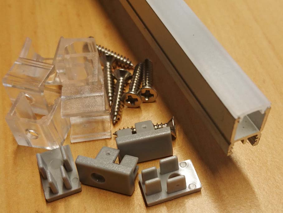 Lieferung je 1 Stück (= 2,0m) inkl. 2 x Endstück, 6 x Bef.-Clip mit Schraube und Dübel.