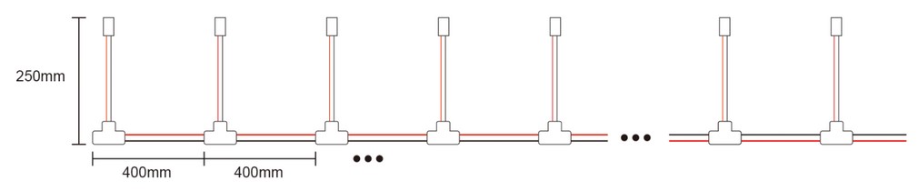 Achtung: Kabellänge zwischen den Abgängen ist immer 40cm, Kabellänge Abgangskabel ist immer 25cm. Hierfür gibt es optional Verlängerungen.